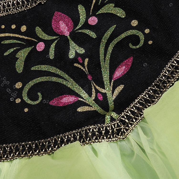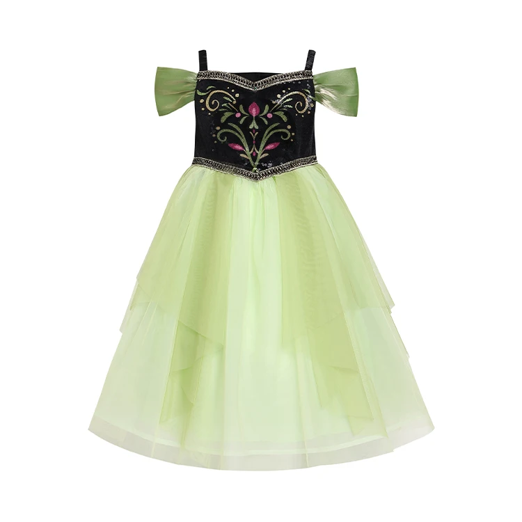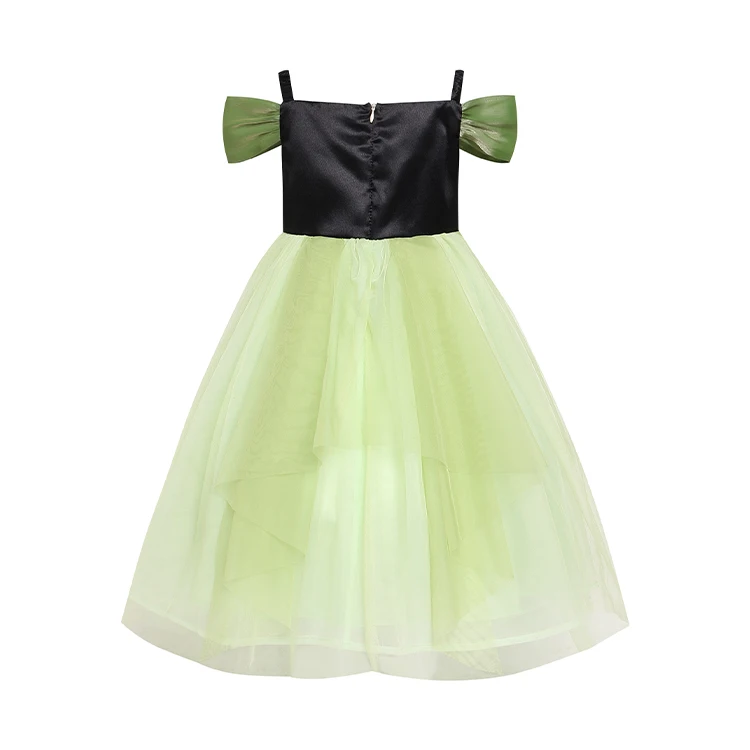 Off-Shoulder Design Airy Texture Girls Green Gown for Stage Performance Comfortable Breathable Polyester Material